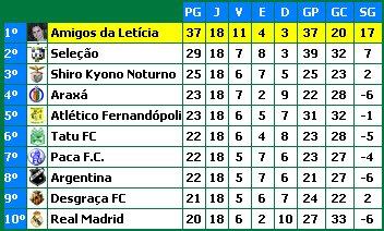 TABELA DO PRIMEIRO TURNO